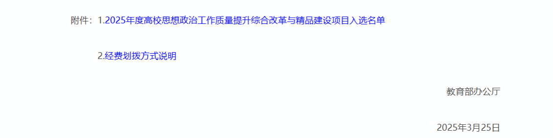 附件:2025年度高校思想政治工作质量提升综合改革与精品建设项目入选名单