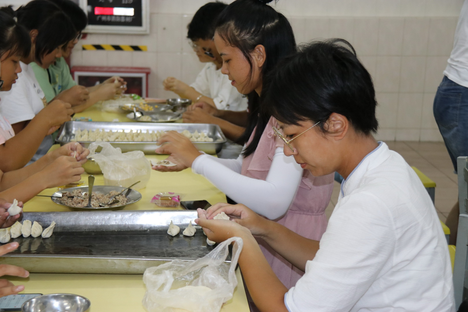 架空层的那头热火朝天,食堂这头的团学工作人员也没有闲着。下午四点,食堂的桌子上已经摆好了包饺子需要的饺子皮、馅料、水等材料。同学们大多结伴而来,与工作人员边学包饺子边聊天。当然,每个人都是创作的小能手,包出来的饺子样式多种,而且都是用心包出来的美味。饺子出炉后,大家拿着碗筷围坐在一起,满足地夹起饺子蘸着自己喜欢的酱。饭桌上其乐融融,聊学习聊八卦聊部门聊未来。吃完饭还一起玩游戏,笑容灿烂。