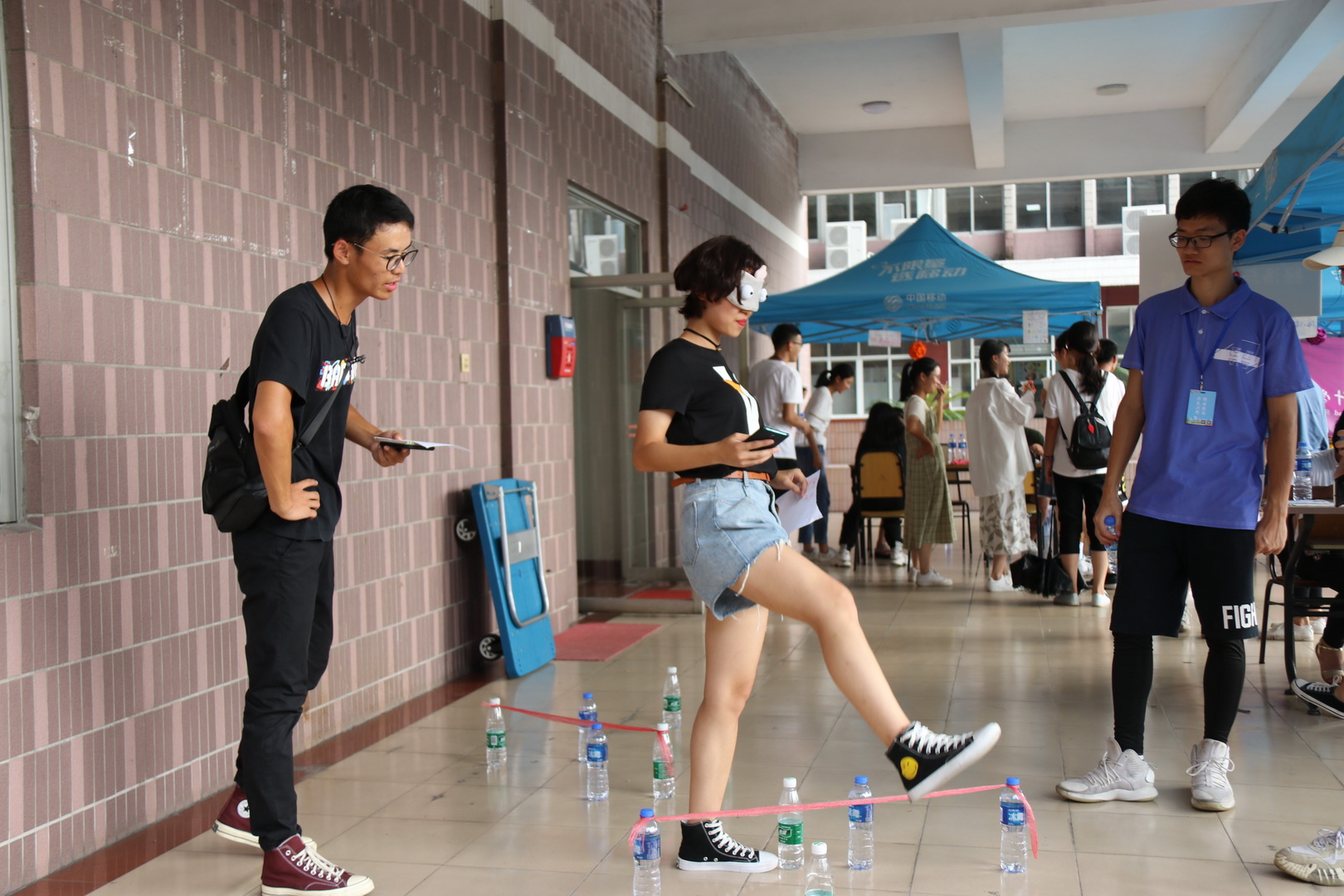 夹水晶宝宝考验的是速度与技巧;数棋子比拼的是盲猜的准确性;套圈则需要拿出百投百中的气势,与之类似的是投壶游戏。而一致好评的过障碍游戏需要蒙眼者的肢体协调能力,需要指挥者的语言表达能力,也需要两个人足够默契和信任。游戏让同学们不再那么百无聊赖,一群人相互配合,为获得礼品而想尽办法集章,时不时发出笑声。在一片欢声笑语中,工作人员与新生的距离逐渐拉近。不少同学纷纷赞叹此次活动给他们带来的欢乐与温暖,也有同学主动帮助工作人员工作。辅导员石红梅老师也特地来现场关心活动的举办情况。