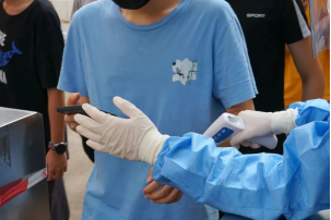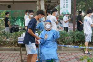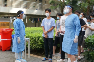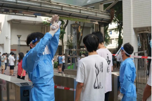 志愿者正在指挥核酸秩序,同学们有序核酸。
