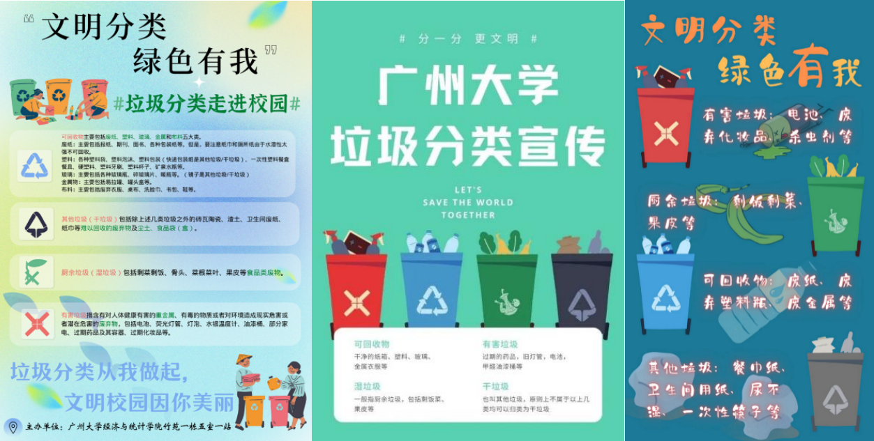 在本次垃圾分类海报设计和以垃圾分类为主题的征文比赛中,我们收到了来自学院同学投稿的二十余件作品。接下来,让我们一起欣赏获奖的同学们设计的创意海报和品读优秀征文吧!