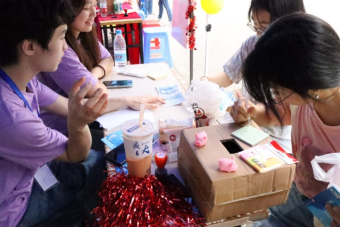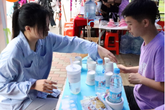 工作人员们到达摊位,对活动现场和游戏道具进行布置,为了同学们能有更好的游戏体验感在做充分的准备。