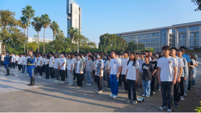 党委副书记付艳、学工办张静静和张淼老师以及2020级、2021级全体本科生同学同沐朝阳,共同参与升旗仪式。