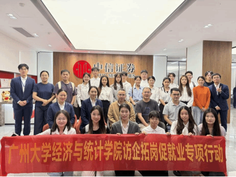 为深入贯彻高校毕业生就业工作部署,深化校企协同育人,4月2日,学院党委副书记廖争荣,金融系主任朱宁、副主任吴华强,学工办副主任赵梅岳及毕业班辅导员陈琭,带领20余名毕业生代表,赴中信证券华南股份有限公司广州番禺清河东路营业部开展访企拓岗专项行动。