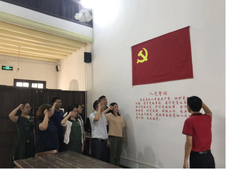 在讲解员的带领下,党员同志深入了解了广东区委监察委员会的发展历程。学习接近尾声时,全体党员观看了“不忘初心、牢记使命”主题教育视频,并结合自身工作实际交流感想。最后全体党员在支部书记许文儒同志的带领下对着党旗进行宣誓,重温入党誓词。
