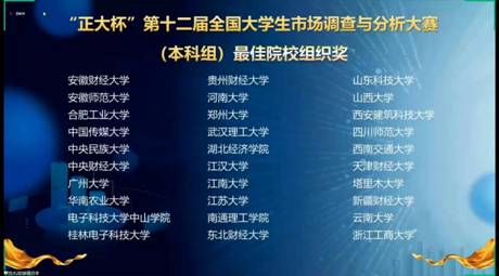 我校荣获“正大杯”第十二届全国大学生市场调查与分析大赛(本科组)最佳院校组织奖
