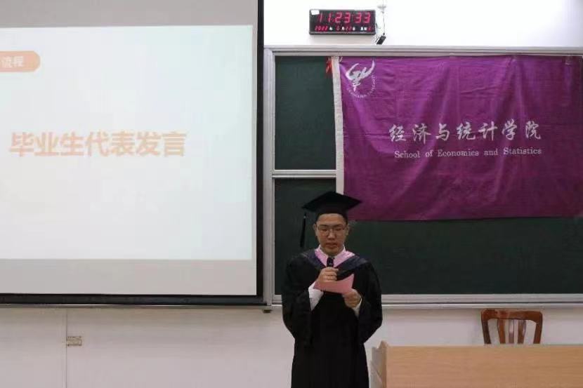 的“德才兼备、家国情怀、视野开阔,爱体育、懂艺术,能力发展性强”人才培养目标继续前行,带着母校和学院的牵挂和敦敦教诲,为党和国家奋发图强。我们都相信,分离是为了更好的重逢,今日经统为我增荣耀,明日我为经统添光彩!