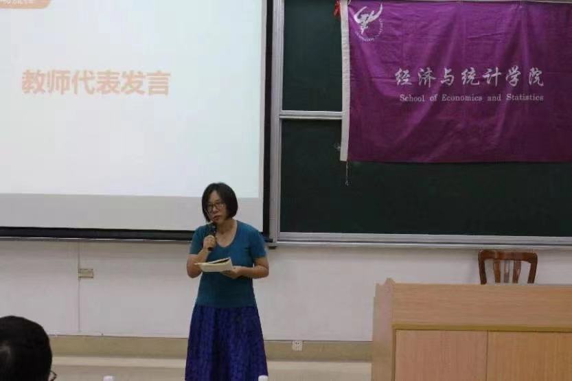 金融专硕常务副主任陈琼向毕业生表示祝贺,向各位研究生导师表示敬意,并向所有付出辛勤汗水的老师和学生表示感谢。她提到,母校是家,承载着汗水、青春和友谊,并对毕业生提出两个期许:一是要不忘初心,二是要勇于创新。最后,陈琼老师向毕业生表达为国家作贡献,为母校争光的祝愿。