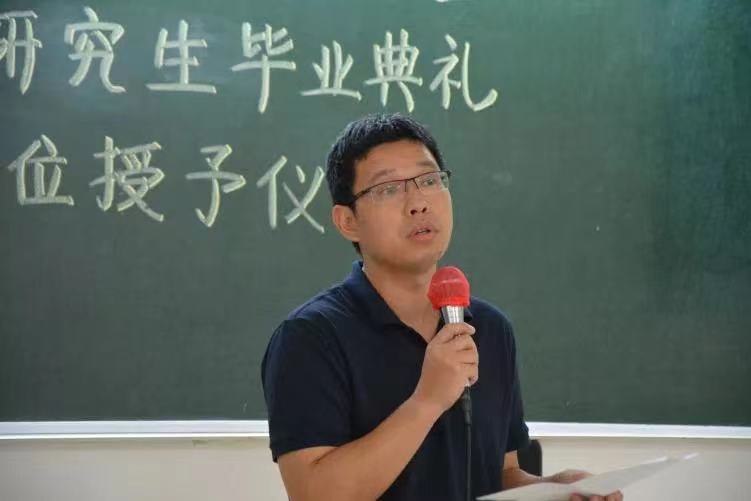 副院长邹文理首先向顺利完成学业并获得硕士、博士学位的同学表达最热烈的祝贺。他对毕业生们提出了三点希望:第一,要保持继续学习的良好习惯;第二,学校学习生涯的结束并不代表人生的学习到达了终点,学生角色的转变只是代表人生舞台的转场;第三,大家应常怀敬畏之心做人,常怀平常之心做事。他还提到,步入社会以后,努力了不一定有回报,但不努力一定没有回报,要减少抱怨和戾气。最后,邹院长衷心祝愿同学们,但行好事,莫问前程。