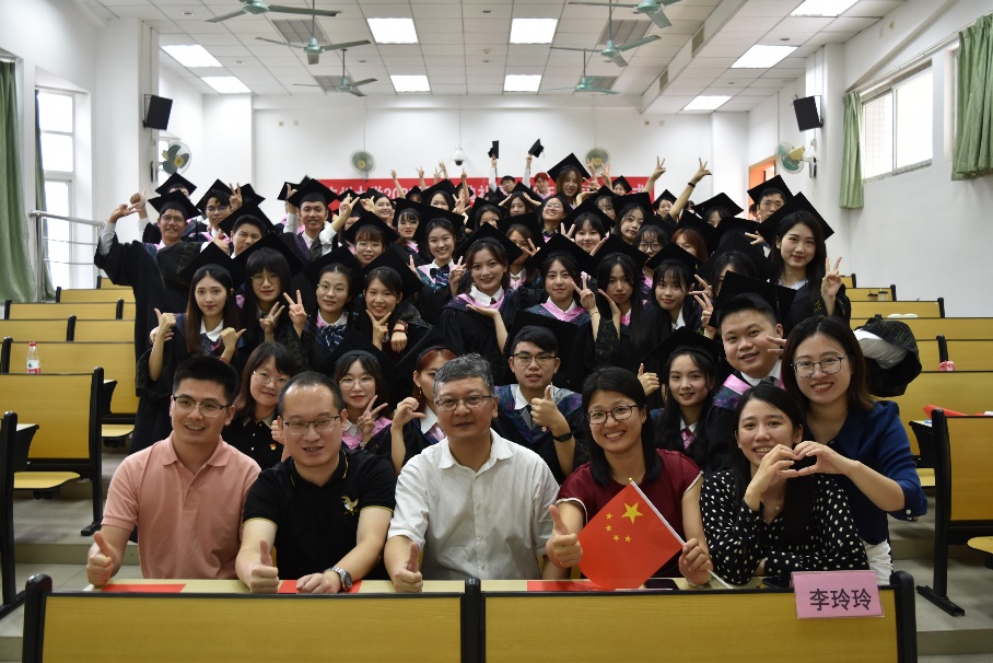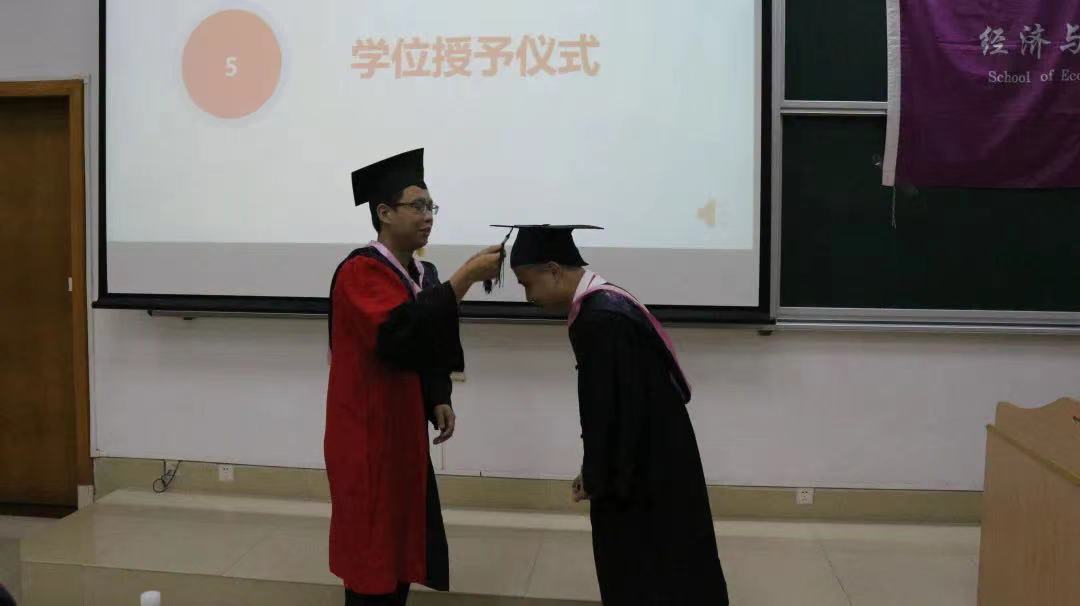研究生场、本科生场分别由学位委员会委员叶祥松教授、尹居良教授和邹文理副教授为毕业生们拨穗、授予博士、硕士和学士学位,并合影留念。
