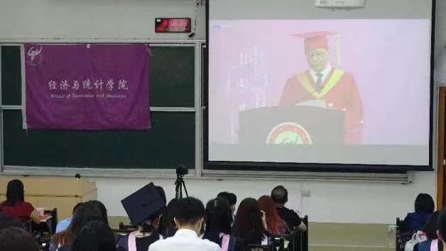 出席研究生会场的嘉宾有叶祥松教授、学院副院长邹文理、金融专硕常务副主任陈琼、教师代表及辅导员;出席本科生会场的嘉宾有学校基建处副处长孟强、学院副院长尹居良、副院长邹文理、副院长冯锐、教师代表、班主任代表及辅导员。
