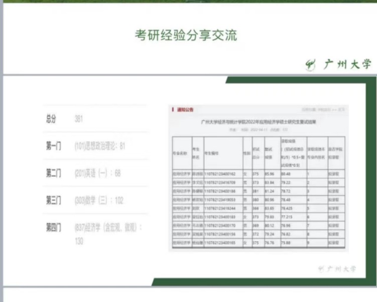 7月25号的分享会由陈健聪做经验分享。陈健聪原就读于国贸182,今年以专业第一初始成绩进入复试。在分享会中他用PPT一一展示考研政治、英语、数学、专业课的复习方法,并分析了所报院校的历年录取情况。在问答环节,他针对性地回答了每门课程的复习计划、参考的学习资料,以及获取优质资料的途径等问题,给2019级的学弟学妹们提供新的思路和参考。