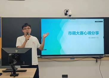 在市调大赛中付出的努力、以及为学校学科竞赛水平提高做出的贡献。她寄语各位参赛同学,以赛促学、以赛促教、以赛促改、以赛促壮,并以此为契机,通过社会调查,增强理论水平,提高专业素养,加强沟通能力和筑牢公共情怀,励志做有理想、有担当、能吃苦、肯奋斗的新时代好青年。