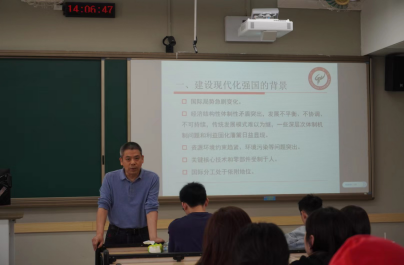 紧接着,傅院长举例分析了当下建设现代化强国的背景,强调了当今国际政治、经济发展格局迎来重塑——日韩关系逆转,地缘政治格局紧张,全球价值链正在从全球化向区域化转变。傅院长指出,在此次百年未有之大变局中,当代大学生应肩负起建设现代化强国的使命。