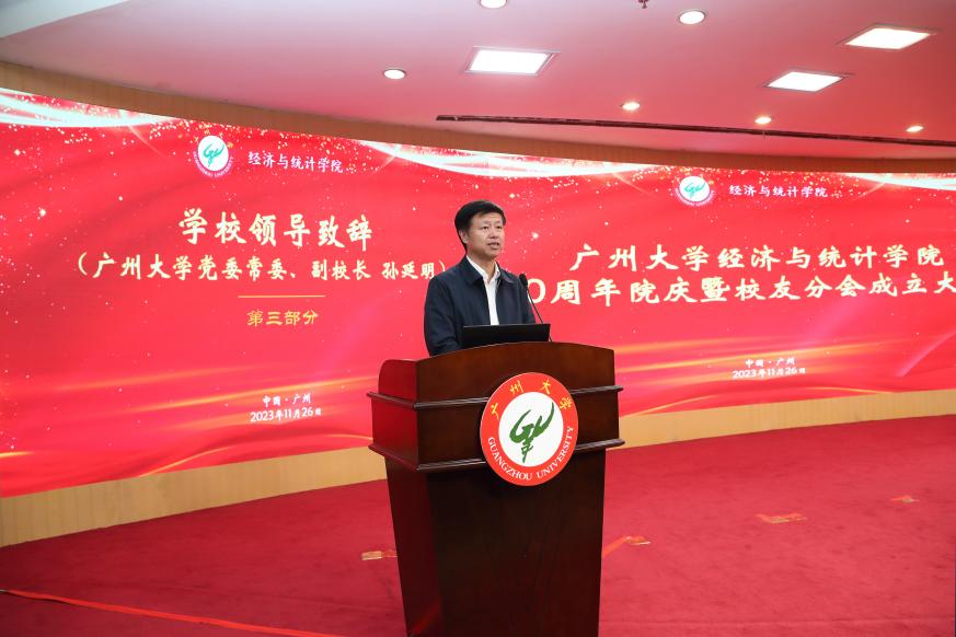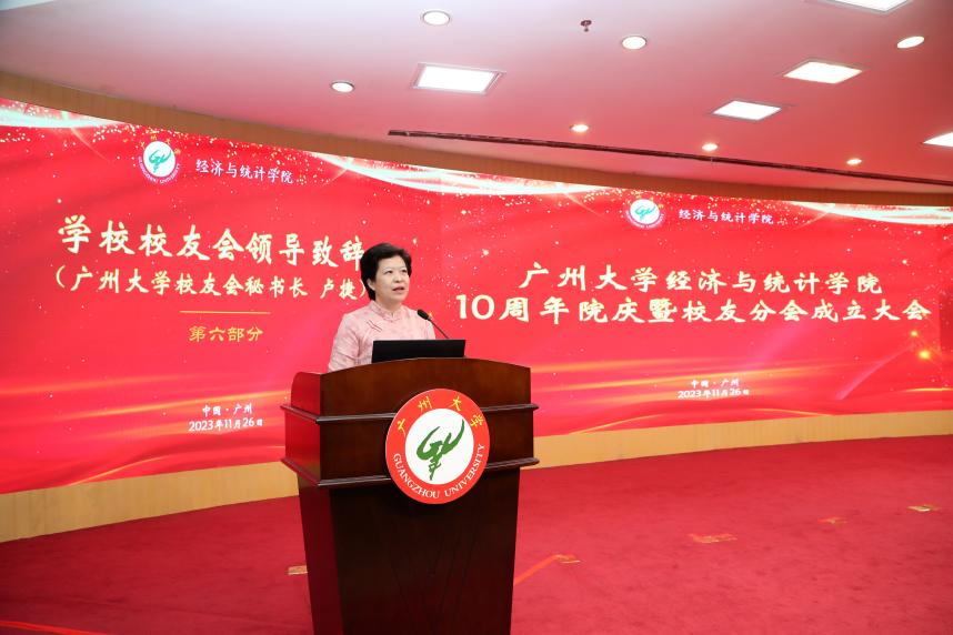 在学院建院10周年之际,学院校友分会成立大会于11月26日上午在图书馆副楼五楼报告厅拉开帷幕。校党委常委、副校长孙延明,学院首任院长叶祥松,校党委常委、统战部部长、校友会秘书长卢捷,广州市南沙区财政局党组书记、局长杨勇华,广州市体育技术学院纪委书记林昭雄,校招生就业处处长林雪松,校团委书记冯锐,校实验中心、网络与现代教育技术中心主任徐建挺,优秀校友代表、MSCI中国指数业务总监黄凡等领导、老师和校友们共同参与,大会由学院党委书记卢国潜主持。