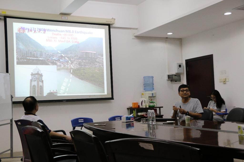 周教授此次研究主要将地震活动性模拟与地震保险定价与巨灾债券定价研究结合在一起。首先采用已有的全国地震数据对地震损失与震级的关系进行拟合;再以模拟的地震活动估计研究区地震危险性,进而估计区域地震损失的概率分布特性。会议期间,周教授积极解答同学们提出的问题,周教授通俗易懂的讲解让与会老师和学生受益匪浅。