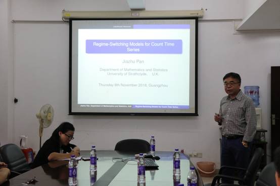 和岭南统计科学研究中心的邀请,在行政东前座412会议室,英国斯特拉思克莱德大学潘家柱教授作了题为“Regime-switching Models for Count Time Series”的学术报告——暨“羊城讲坛”第四十八讲,旨在进一步提高年轻学者及研究生对相关研究的理解。此次讲座由崔霞教授主持,相关专业的师生参加了此次讲座。