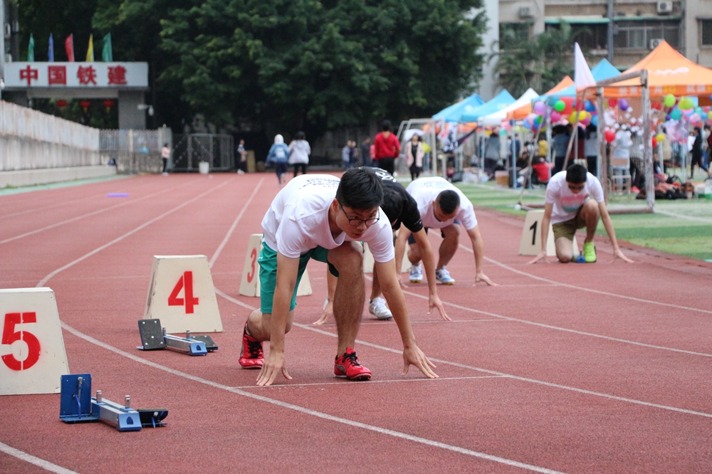最为激烈的是田径赛场。红色的塑胶跑道上,运动员穿着短袖,迎着冷风,在“砰”的一身过后像离弦的箭飞奔而出。绿色的草坪上,加油的同学也忍不住跟着比赛的同学奔跑起来,不断地加油鼓劲。阴冷的操场角落,红会的同学摆好摊位,照料着受伤、不适的选手。