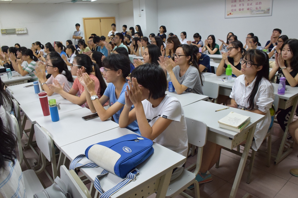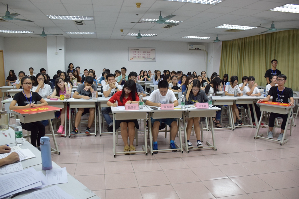 与此同时,在507课室也进行着精彩的辩论。由物电学院刘广强师兄、公管学院钟钰铃师姐以及经统学院方静怡师姐担任评委。正反方就“大学生短期支教利大于弊还是弊大于利”展开激辩。正方金融162、163班主要认为教育资源匮乏,大学生支教参与度高、辐射面广,能给贫困山区学生带去希望的种子,而反方国贸161、金工161班则着眼于短期支教,不连续,且资源分散,大学生没受过系统教育,教学质量不佳,既不能使学生收到好效果,又浪费自己时间。对辩环节双方皆情绪丰富,字字珠玑,引得现场观众频频鼓掌。