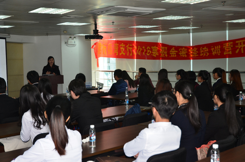 尚雷雷同学慷慨激昂的演讲,展示了经统学子积极向上的精神面貌,同时代表学员们表达对于本次培训的满心期待之情。随着三段创意十足的形象宣传视频的结束,上午的仪式暂告一段落。学员们与建行员工一起享用建行食堂可口的饭菜,体验建行种类齐全的娱乐休闲设施,感受建行家一般的环境。接受了“建行手机银行操作”、“财富管理与金融产品”这两个主题的培训后,开营仪式宣告结束,学员们被分配到各个地方网点,进行为期一周的实操训练。