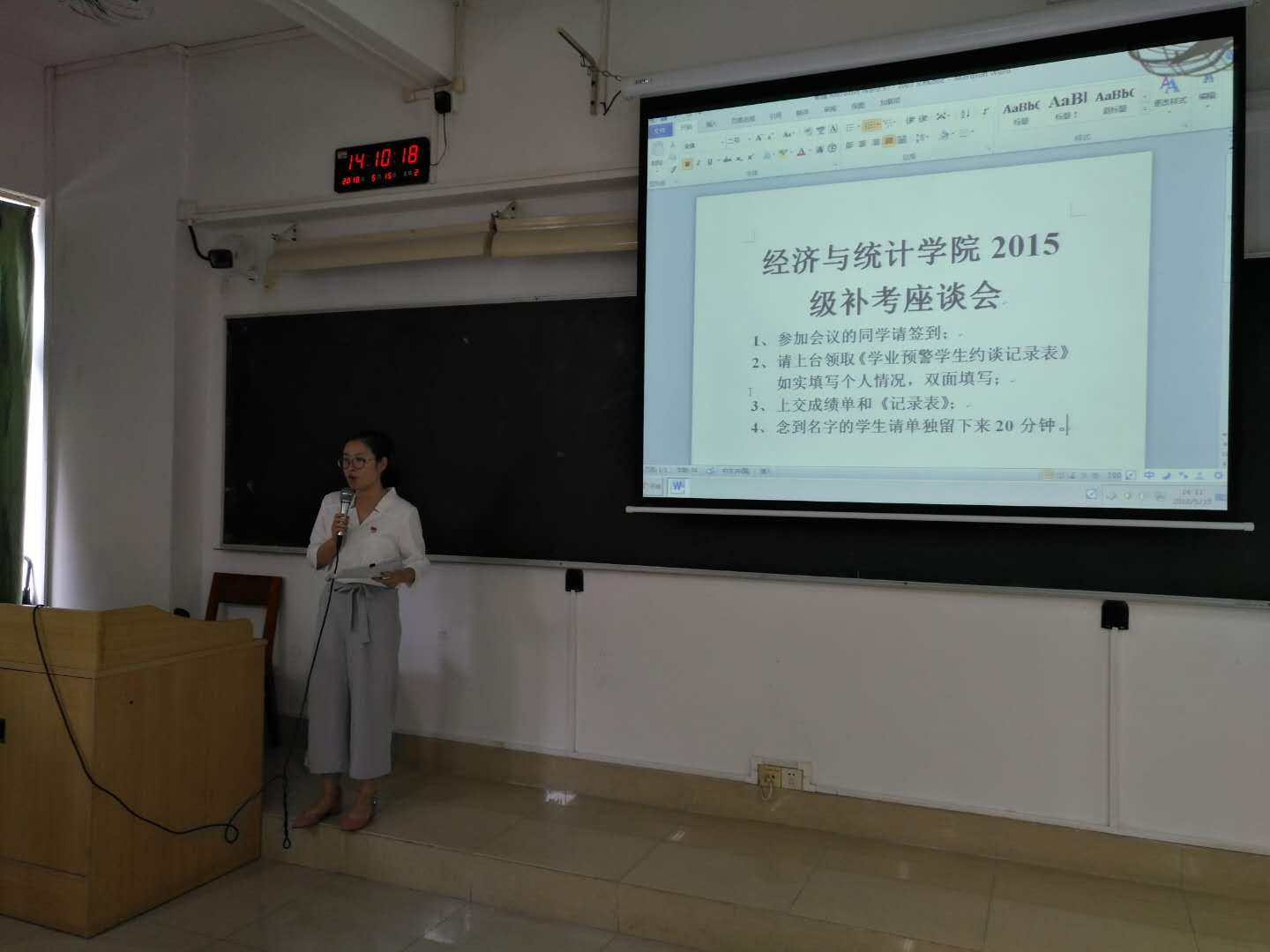 此次座谈会对象,是截止2018年4月仍有不及格学分的15级学生。会上主要强调学校教务文件的变化对2015级学生按期毕业的影响,解读修读学分与毕业、结业条件的关系;并要求每位学生自带成绩单,如实填写《学业预警学生约谈记录表》,对自己的挂科情况、挂科原因进行综合分析,并提出进一步的改进措施。