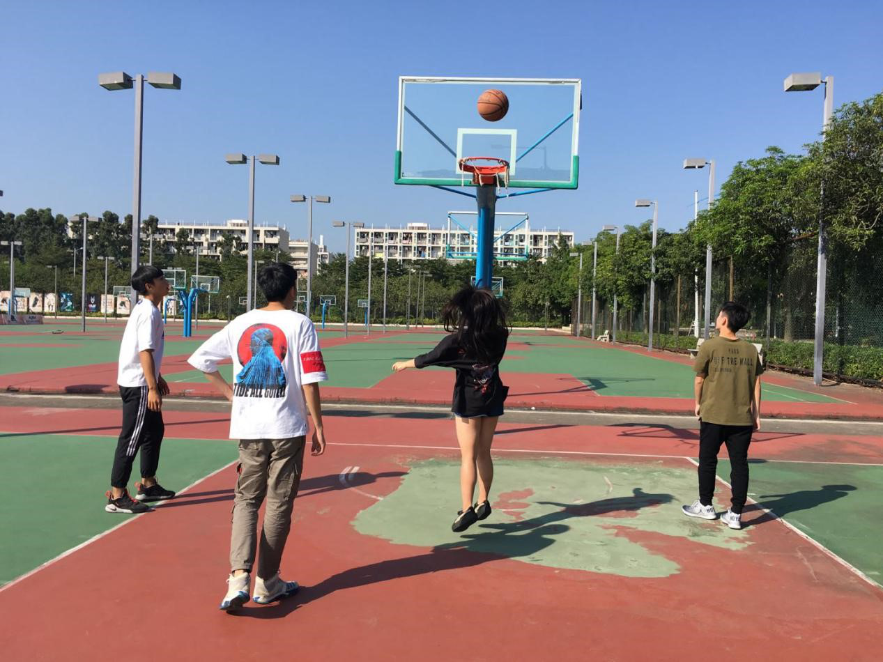 比赛一开始同学们就如离弦之箭奔往比赛场地,东区篮球场上同学们合作投篮,有的男女搭配,干活不累,整个小组通力合作指导同学提高投篮的命中率有的女汉子一个人撑起了一个小组,五投五中有的小组虽然五投没有中,并接受残酷的惩罚—十五秒一展歌喉的时间,但因为是小组一起共同经历的,所以也乐在其中。