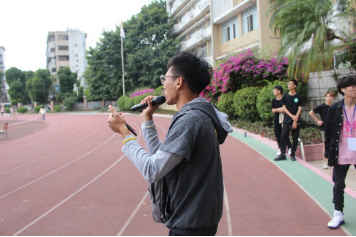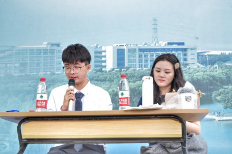 他们端坐在主席台上,朗读着同学们递来的通讯稿,他们用声音传递热情,为运动员们鼓舞士气。