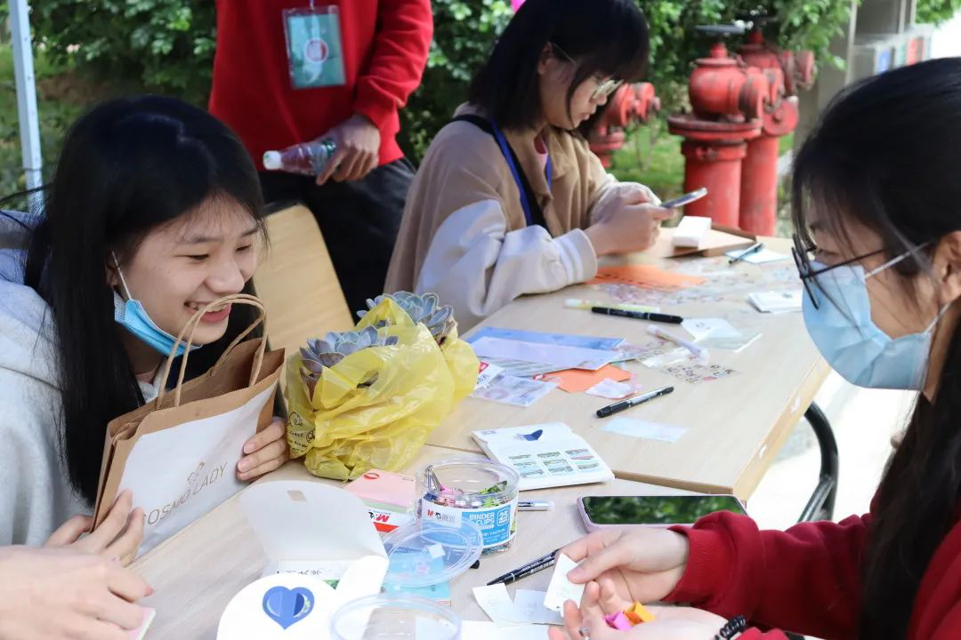 当然,既然有游戏环节,怎么能少得了领奖品环节呢?工作人员为赢得游戏的同学们赠送小礼品——文件夹、纸胶带、满天星干花、广大校园风景明信片……成功通过游戏者更可获得相应数量的印章,集章卡集满五个章即可参与校会的惊喜抽奖!