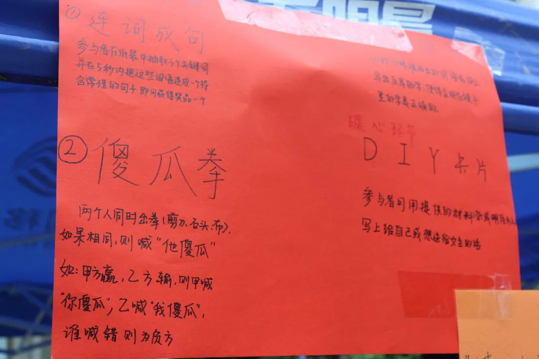 在这个充满欢欣的日子里,为了让同学们能够尽情享受这一天,各个摊位准备了傻瓜拳、正字反写、连词成句等小游戏,更有情侣限定游戏和精美小礼品,让大家在游戏中享受来自女生节的无穷乐趣。