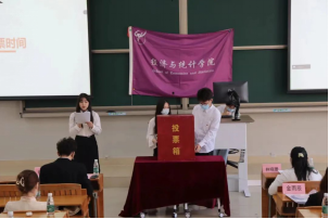 接着,主持人依次介绍了学生委员候选人并由代表们投票选举学生委员会委员,由监票人胡楚娴同学公布选举结果并由团委副书记黎思慧同学公布经统学院第十届学生会主席成员、第六届委员会成员名单。