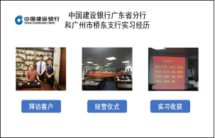 ·2018.7—2018.8 分别在中国建设银行广东省分行和广州市桥东支行实习