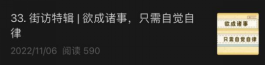 街访特辑活动主要是围绕时事热点,且与心理有关的特定主题街访,由于疫情风险,采访地多在校内,受访者多为学校内部学生。采访分为采访组与推文组,采访组内细分工有拍摄、采访、整理,最后汇总给推文组,推文组撰写、排版后发布街访特辑推文,推送至各班群。