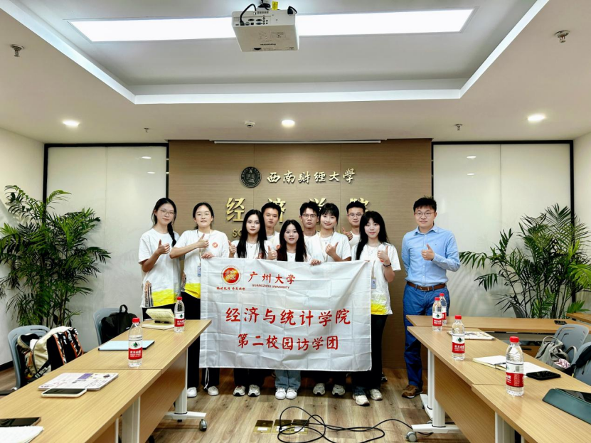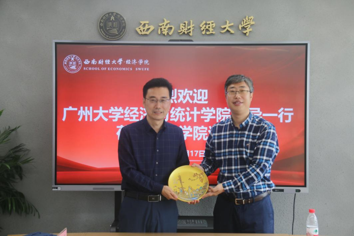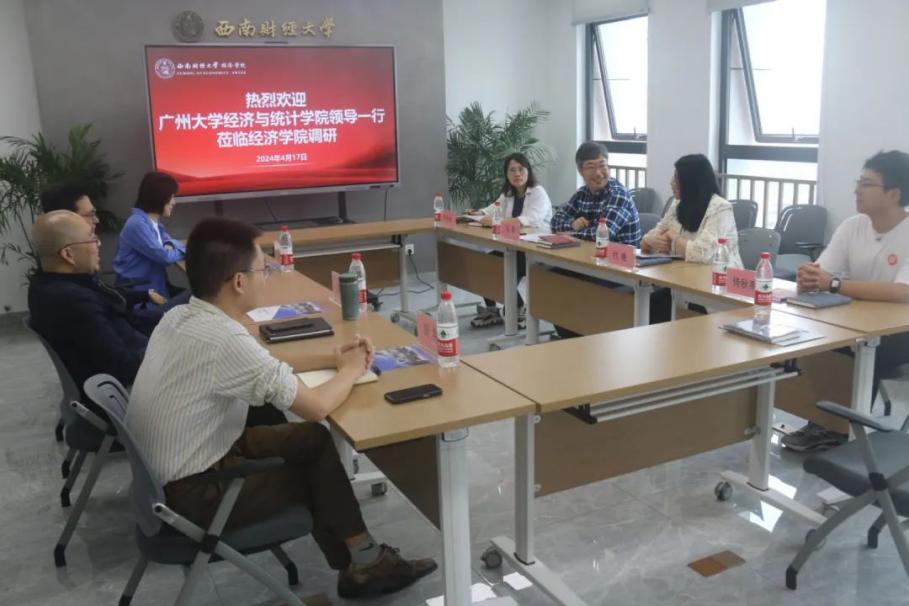 马双副院长、付艳副书记、张静静老师以及侍秋禹老师与西南财经大学经济学院盖凯程院长、胡舒副书记、祝燕妮主任、舒坦老师展开座谈交流。双方就人才培养,专业建设,科研成果,学科评估,学生党建、就业、劳动教育等进行深入交流。