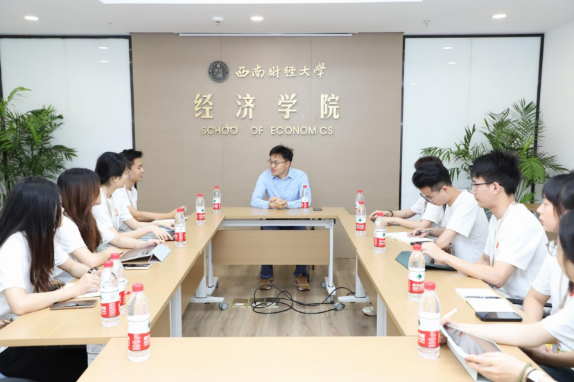 在两院领导、教师交流的同时,访学团成员也来到诚正楼开展教学名师访谈。此次访谈的名师是西南财经大学经济学院姚常成副教授,访学团每位成员逐一向姚老师提问,姚老师根据每位同学提出的问题耐心地进行答疑解惑。