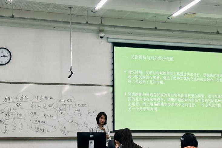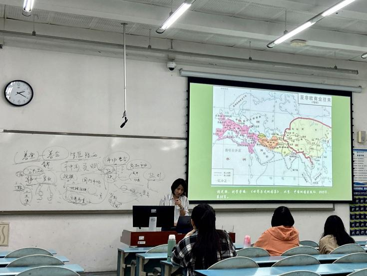 在课程中,赵劲松老师先对上节课的内容进行了回顾和小结,然后提出“如何度量中国市场发展程度”这一问题来引出本节课的主题。课堂上,赵劲松老师寓教于乐,采用观看历史纪录片的方式,将汉代以来中国的贸易方式更直观地呈现在了同学们面前。同时,还从人口总数、区域面积、地理位置、运输效率和成本、政府政策等方面比较了古代中国和其他西欧国家的市场发达程度。最后,赵老师引导同学们课后要积极思考,通过思考加深自己对知识的理解,同时提高自己的思辨能力。