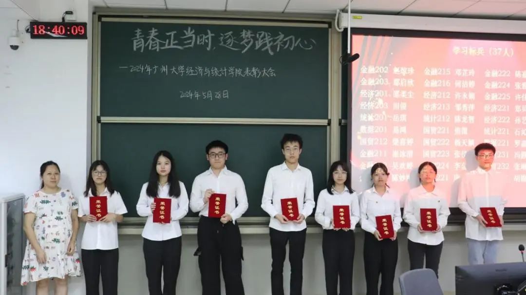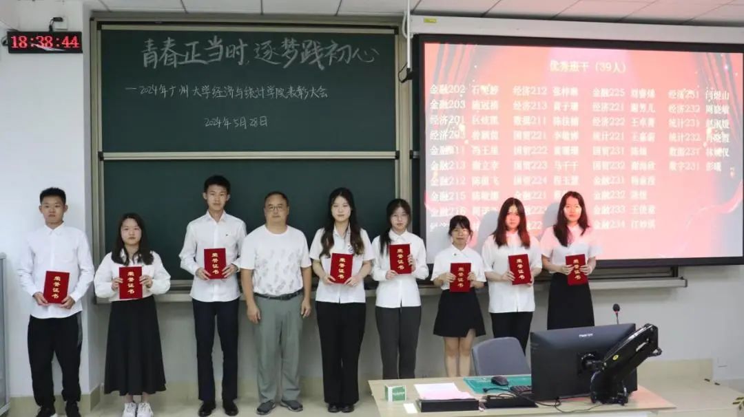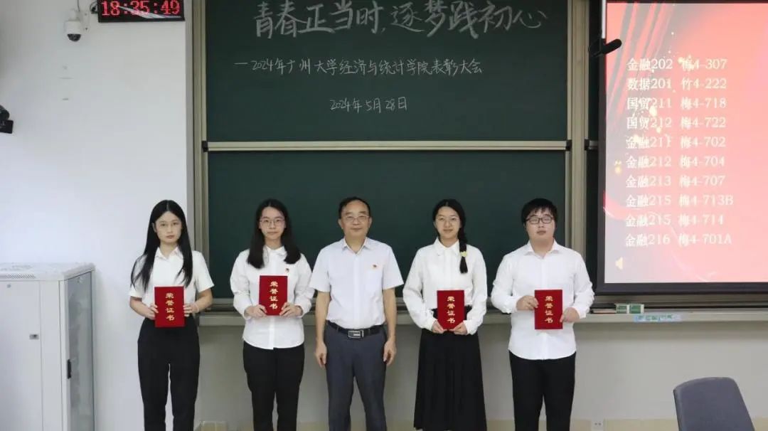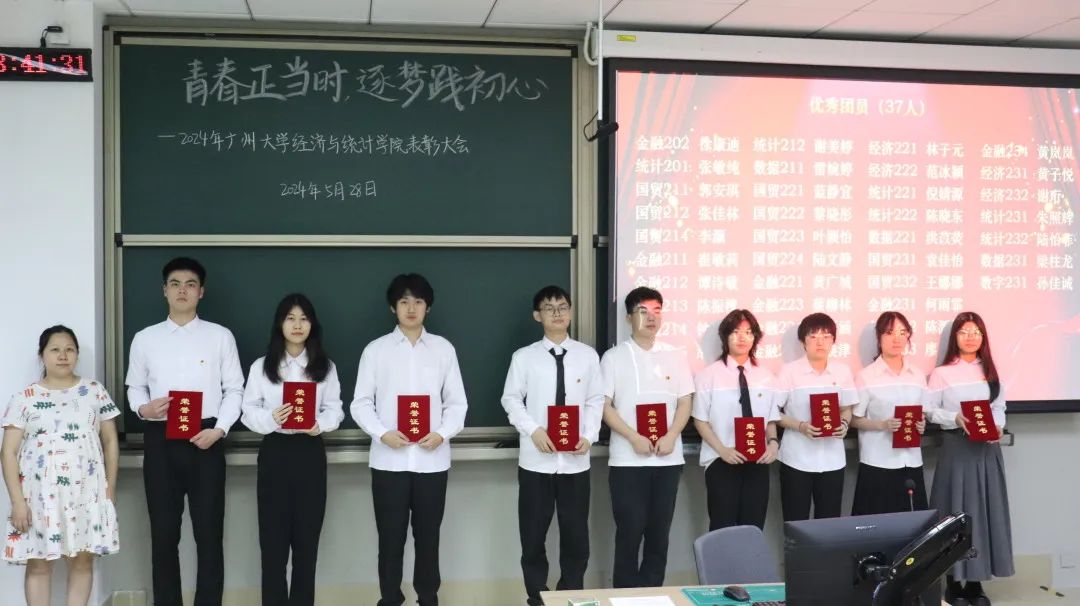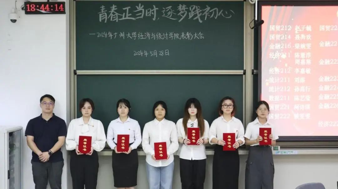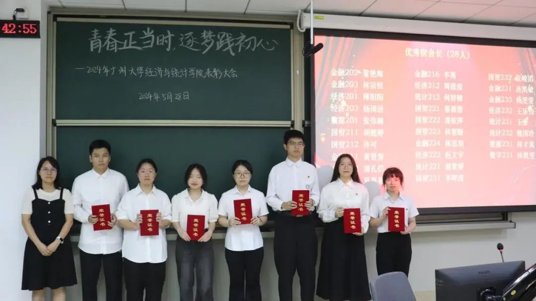 在大学城校区文新119举行了“青春正当时逐梦践初心”2024年表彰大会。学院党委卢国潜书记、付艳副书记,学工办刘源老师、林晓珊老师、张静静老师、朱佳伟老师和学生共同参与此次表彰大会。