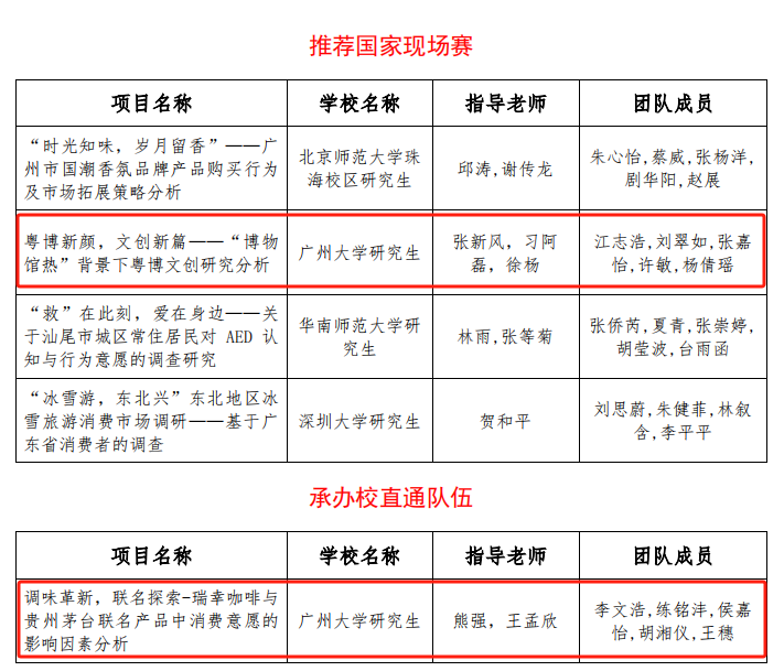 附:“正大杯”第十四届全国大学生市场调查与分析大赛广东赛区评审结果