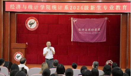 此次开学典礼、专业教育分两场同时进行,经济系专业教育在小礼堂开展,主要参加学生为2024级经济学、金融学、国际经济与贸易、数字经济专业本科新生;统计系专业教育在学术报告厅开展,主要参加学生为2024级统计学、数据科学与大数据技术专业本科新生、2024级应用统计硕士研究生。