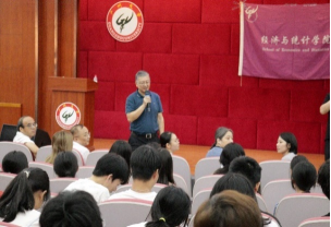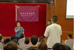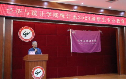 统计系会场,尹居良副院长对新生的到来表示热烈的欢迎,并介绍了学院雄厚的师资力量、优质的办学条件、各专业的就业前景。此外,尹院长勉励新生要珍惜大学时光,主动学习,夯实专业基础,丰富知识储备,提升个人能力,为未来发展奠定坚实基础,进而成就辉煌人生。