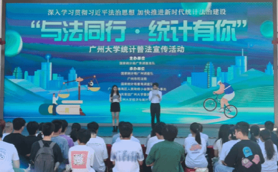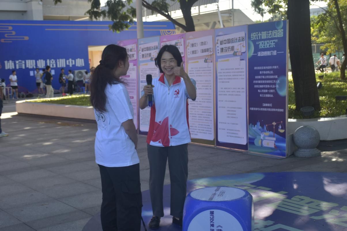 此外,35名骑行选手以小组为单位,沿着打卡路线顺利完成骑行普法宣传活动,60余名本科生代表积极参与“掷骰子”互动问答游戏环节,在互动中进一步学习统计法治知识。