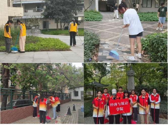 组织大学城和桂花岗两校区学生在教学区、生活区开展劳动实践。在2024级12名学生的共同努力下,桂花岗校区新单西恢复了清新与整洁的面貌。