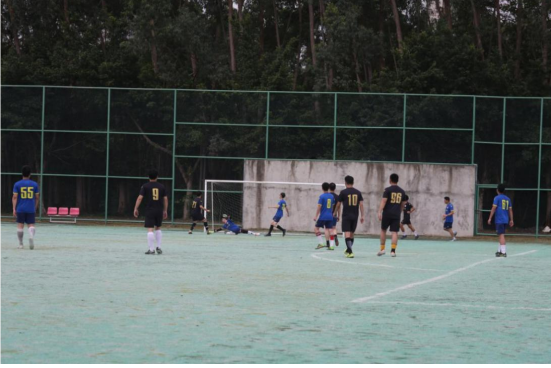 双方球队在校时期都属于经统学院校队,参加校级足球联赛,可以说对彼此的风格和踢法特点都十分了解。上半场刚开始,双方就直接短兵相接,没有太多的试探,激烈拼抢,场面激烈但是都未能形成威胁射门,半场闷平,比分0:0。下半场,1415经统联队率先作出改变,全线往前推进,下半场5分钟,61号球员面对对方两名防守球员,依靠个人能力晃开后卫后突施冷箭,劲射远角,打入本场比赛首枚进球,吹响进攻号角;比赛来到10分钟,1415经统获得角球,13经统门将扑球脱手,1415经统联队61号球员抢先补射打入空门,1415经统2:0领先。12分钟,13经统联队大禁区顶远射中梁弹出,1415经统联队后卫抓住反击机会拿到球后长传找到61号球员,61号球员形成单刀,过掉门将起脚可惜射门偏出。17分钟,1415经统联队球员中路组织进攻,再次长传找到61号球员,通过挑球过掉对方最后一名中后卫后凌空抽射破门。终场哨声响起,最终比分1415经统联队 3:0 13经统联队。