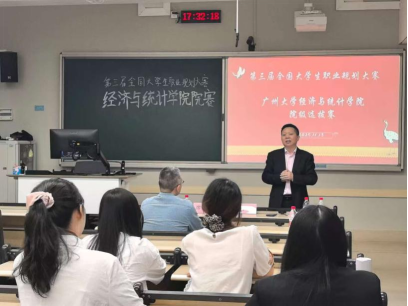 于11月13日下午在文新楼701举办了大学生职业规划大赛院级选拔赛。本次赛事邀请了学院党委廖争荣副书记,职业规划资深教师张新风老师、刘源老师及经统学院客座教授萧洪老师组成评审团,从职业目标、岗位胜任力、发展潜力等维度对参赛本科生的表现进行专业点评。此次选拔赛不仅为学生提供了职业能力展示的平台,更将推动学院就业指导工作走深走实,为学生就业赋能增效。